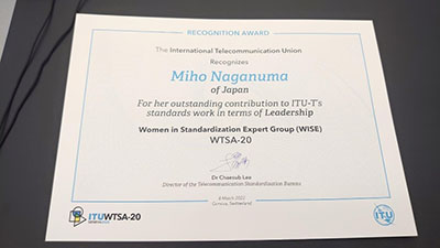 パネルディスカッションには、NEC永沼氏がパネラーとして参加、ITU-T標準化活動への貢献<リーダーシップ>にて、TSB局長より表彰されました。引き続きTSAG副議長等のご活躍を期待しております。
