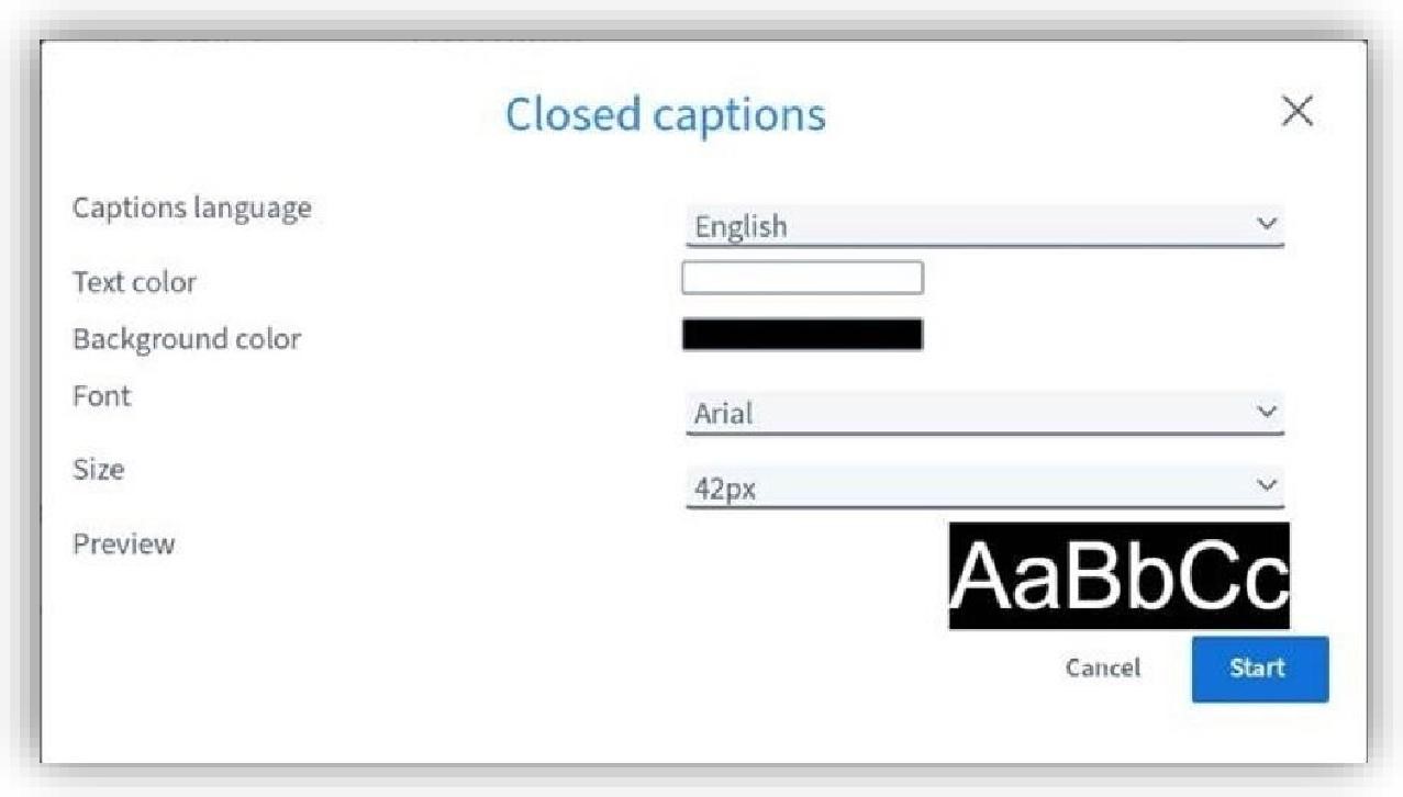 キャプションが予期せず停止した場合は、「キャプションの終了」、「キャプションの開始」の順にクリックします。これは、セッション中に新しいキャプション担当者が引き継いだ場合に発生することがあります。
