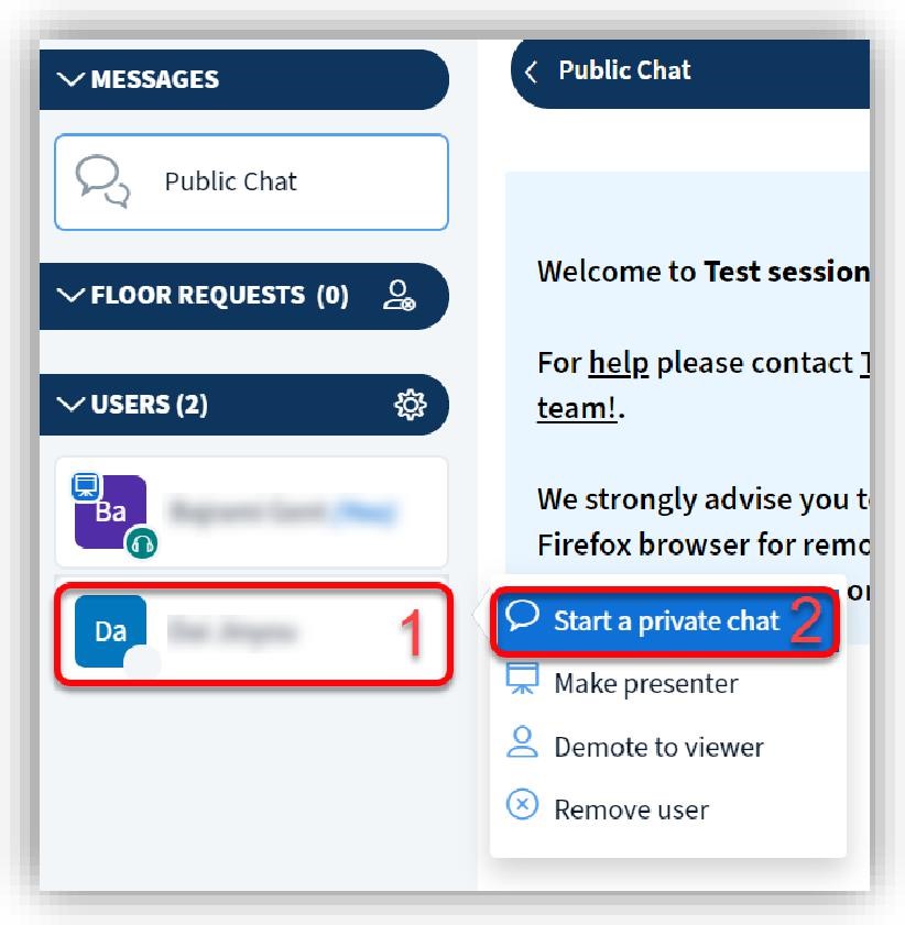 対話したいユーザーをクリックし、次に「プライベートチャットを開始する」オプションをクリックしてください。