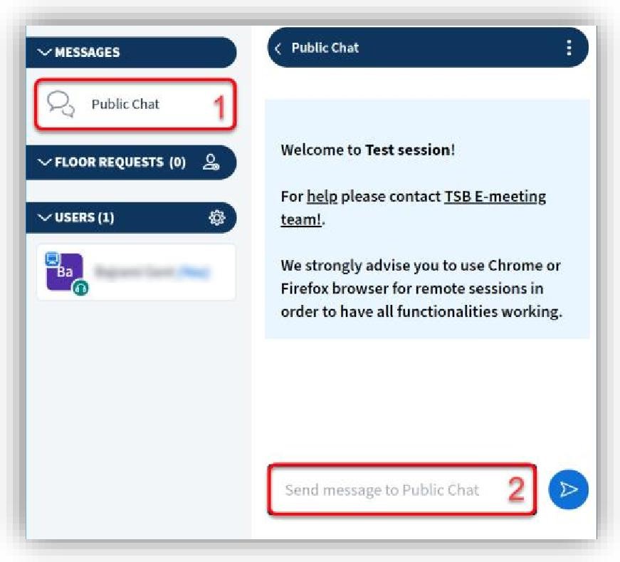 「パブリックチャット」 オプションをクリックし、テキストボックスに次のように入力します。